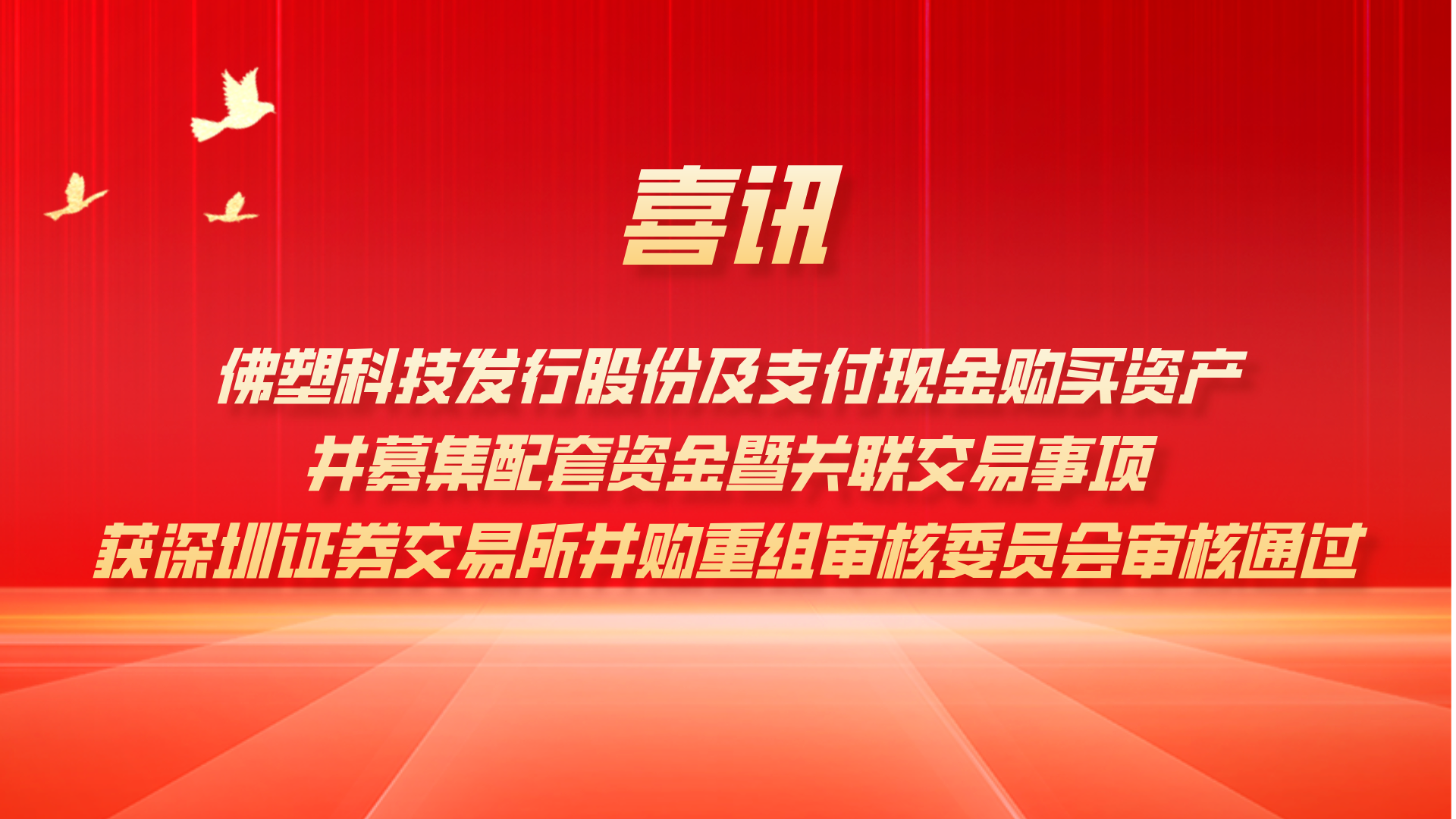 [集團新聞] 喜訊!佛塑科技發(fā)行股份及支付現(xiàn)金購買資產(chǎn)并募集配套資金暨關(guān)聯(lián)交易事項獲深圳證券交易所并購重組審核委員會審核通過